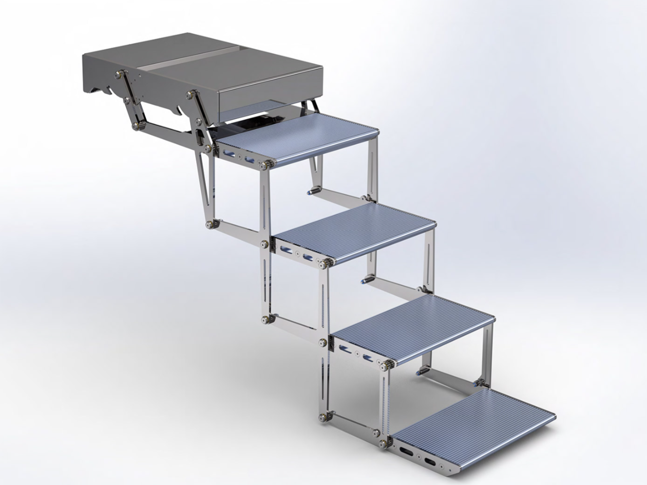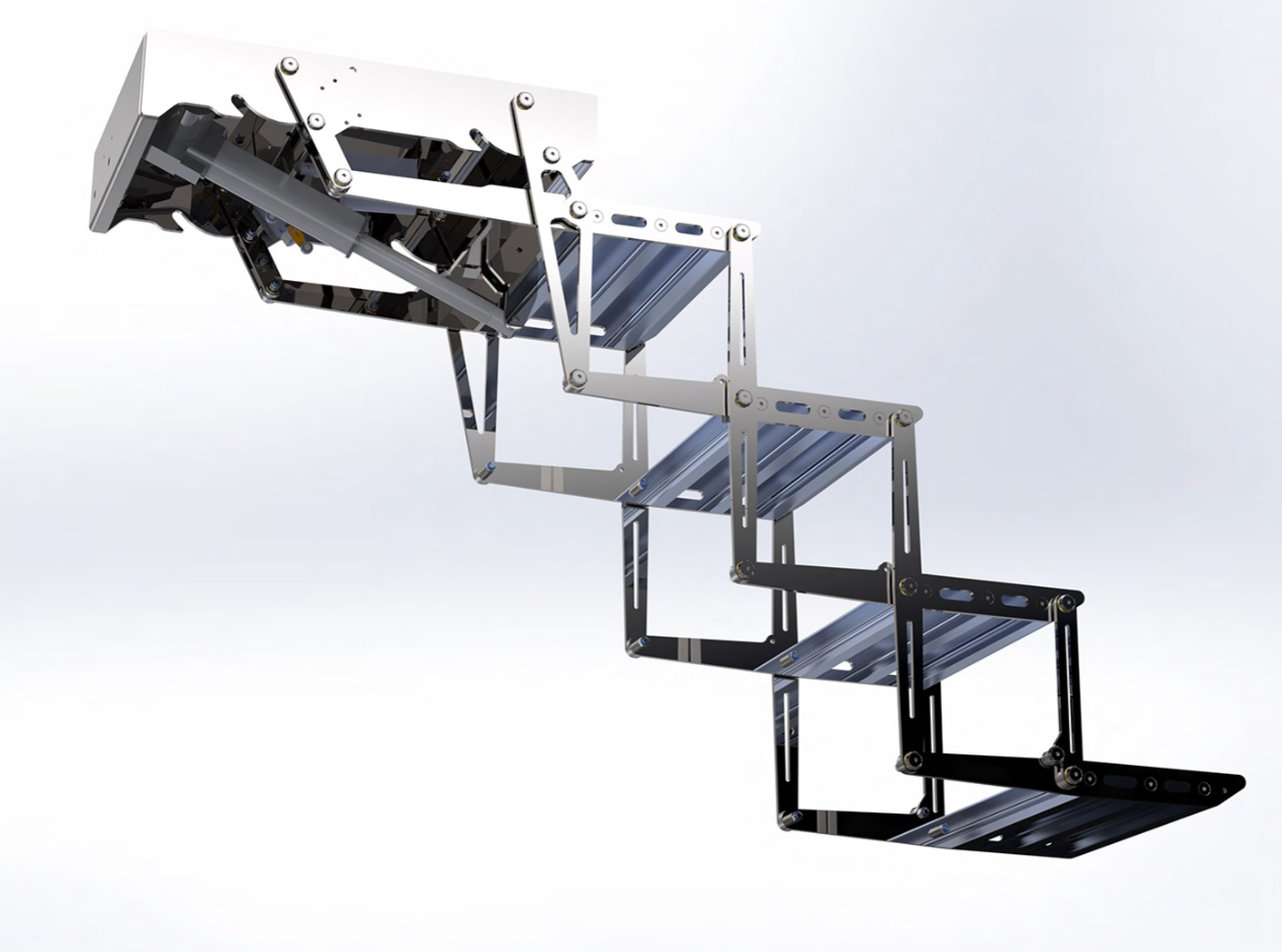 电动折叠式阶梯,配备遥控器实现折叠与展开功能。