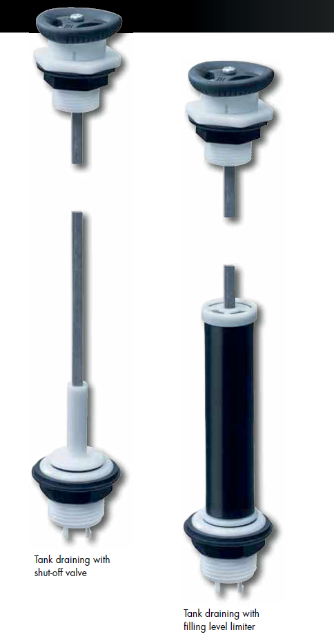 带液位限制器的水箱排水装置,适用于清水箱的简易排水操作。双级系统整套包含:截止阀溢流功能连接杆排水手轮清水箱液位限制器长度与高度可按需定制带截止阀的水箱排水装置适用于清水箱的简易、完全排水。单级系统整套包含:截止阀连接杆排水手轮长度可按需定制